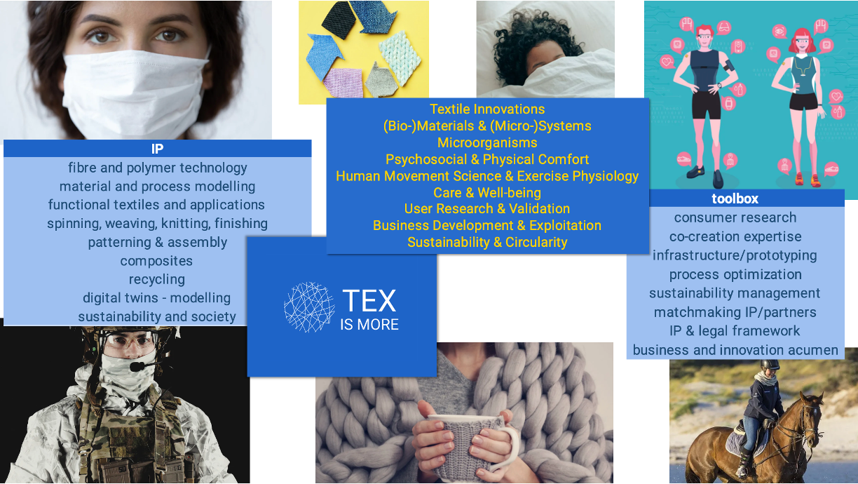 To make our solutions tangible, the Centre for Textile Science and Engineering (CTSE) is the backbone of TEX IS MORE supported by many other research departments who have a direct or indirect link with textiles.